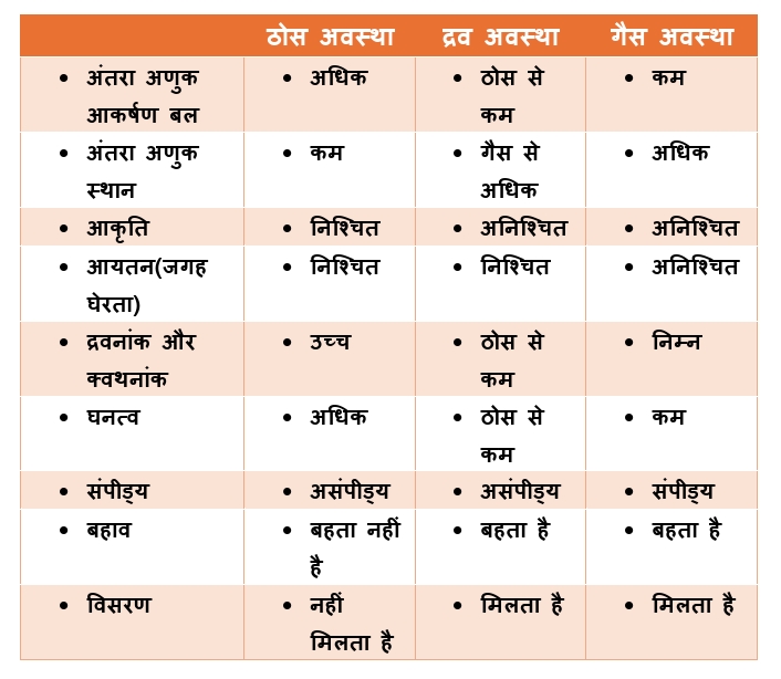 (iii) पदार्थ के कण एक दूसरे को आकर्षित करते है और इनके बीच एक आकर्षण बल होता है, जिसे अंतरा अणुक आकर्षण बल कहते है। ठोस में अंतरा अणुक आकर्षण बल अधिक होता है।