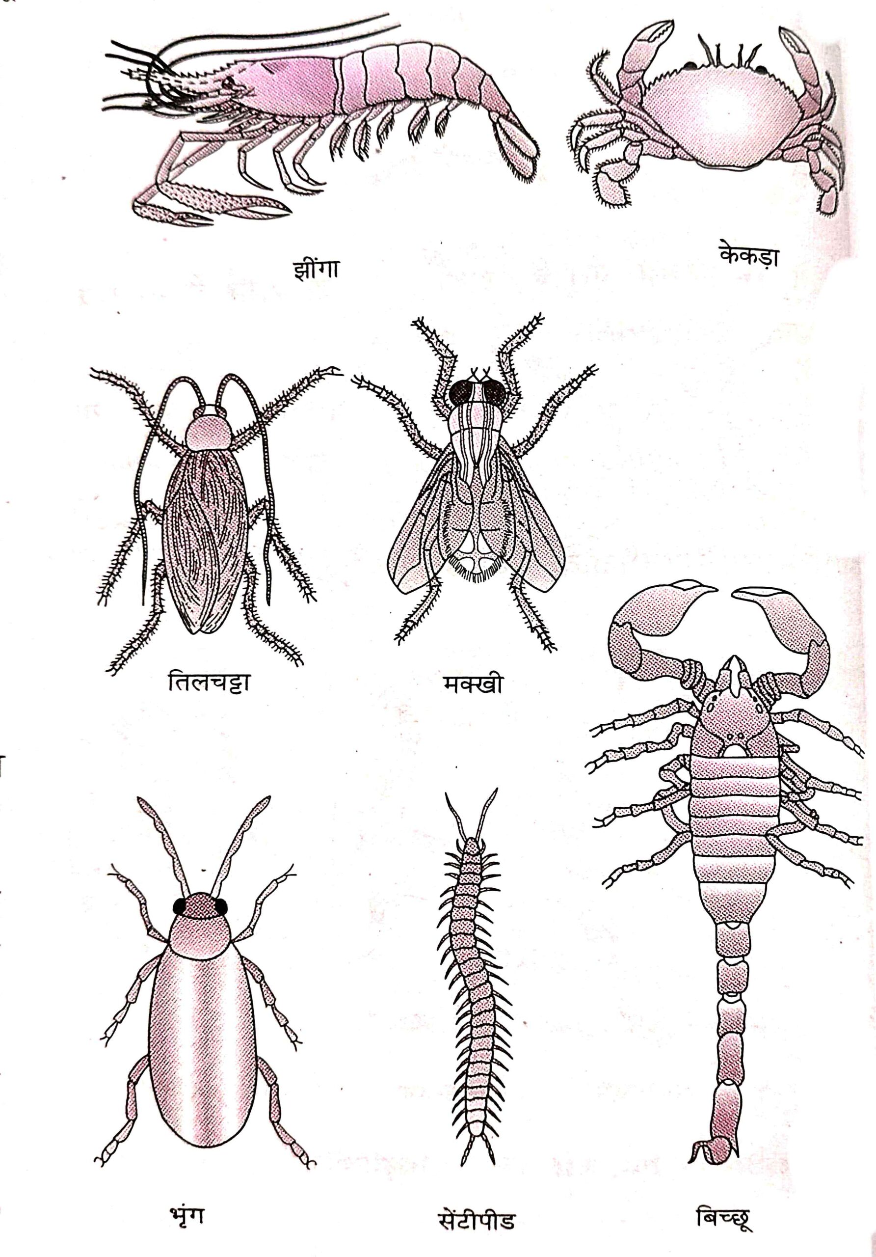 (vii) इसका उदाहरण — झींगा , केंकड़ा, तिलचट्टा, मच्छर, मक्खी, तितली, बिच्छू