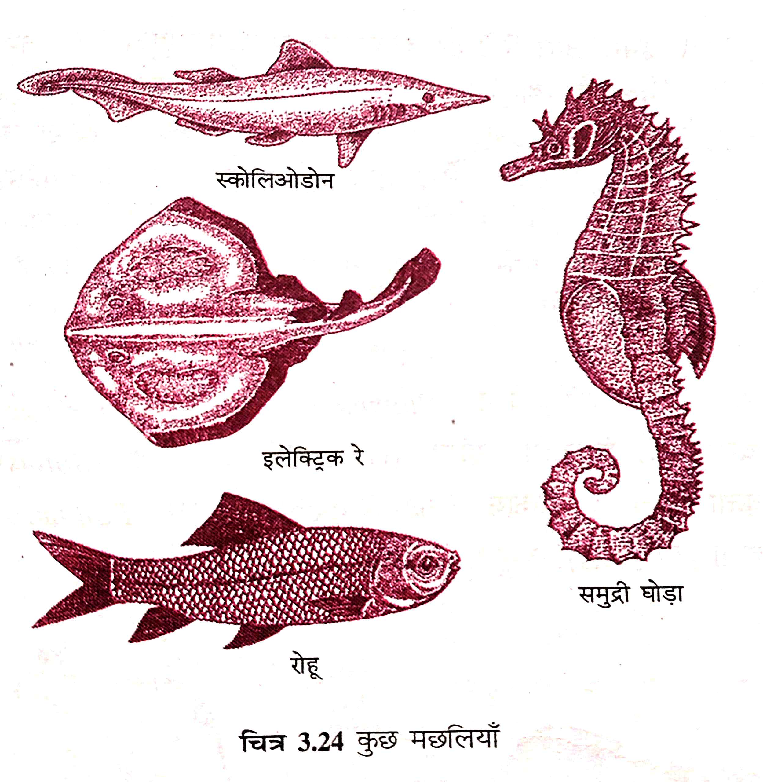 (vii) इसका उदाहरण – स्कोलिओडोन, इलेक्ट्रिक रे, रोहू, समुद्री घोड़ा आदि।