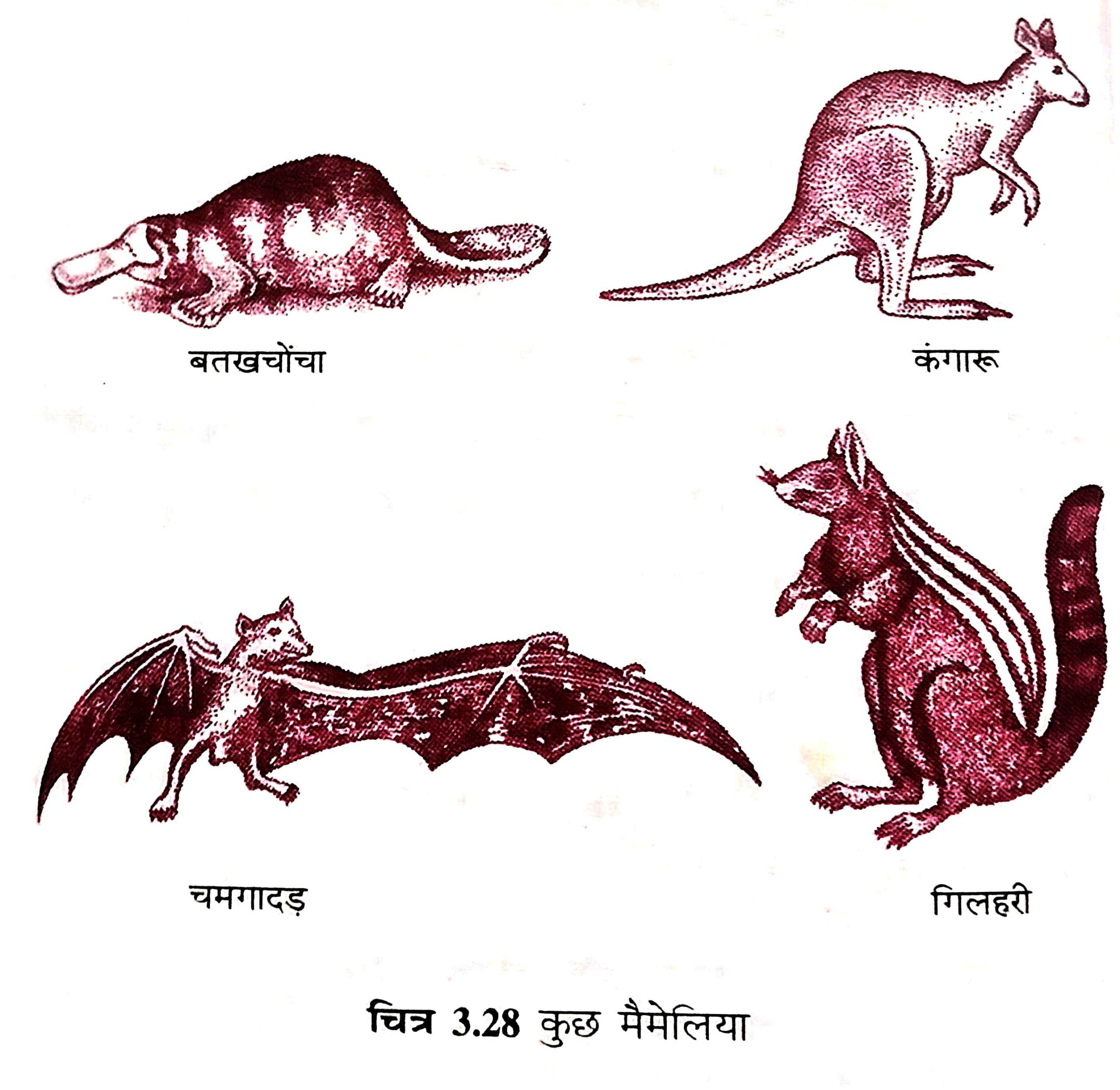 (vi) इसका उदाहरण – चमगादड़, गिलहरी, चूहा, कुत्ता, बंदर, शेर, हाथी, मनुष्य