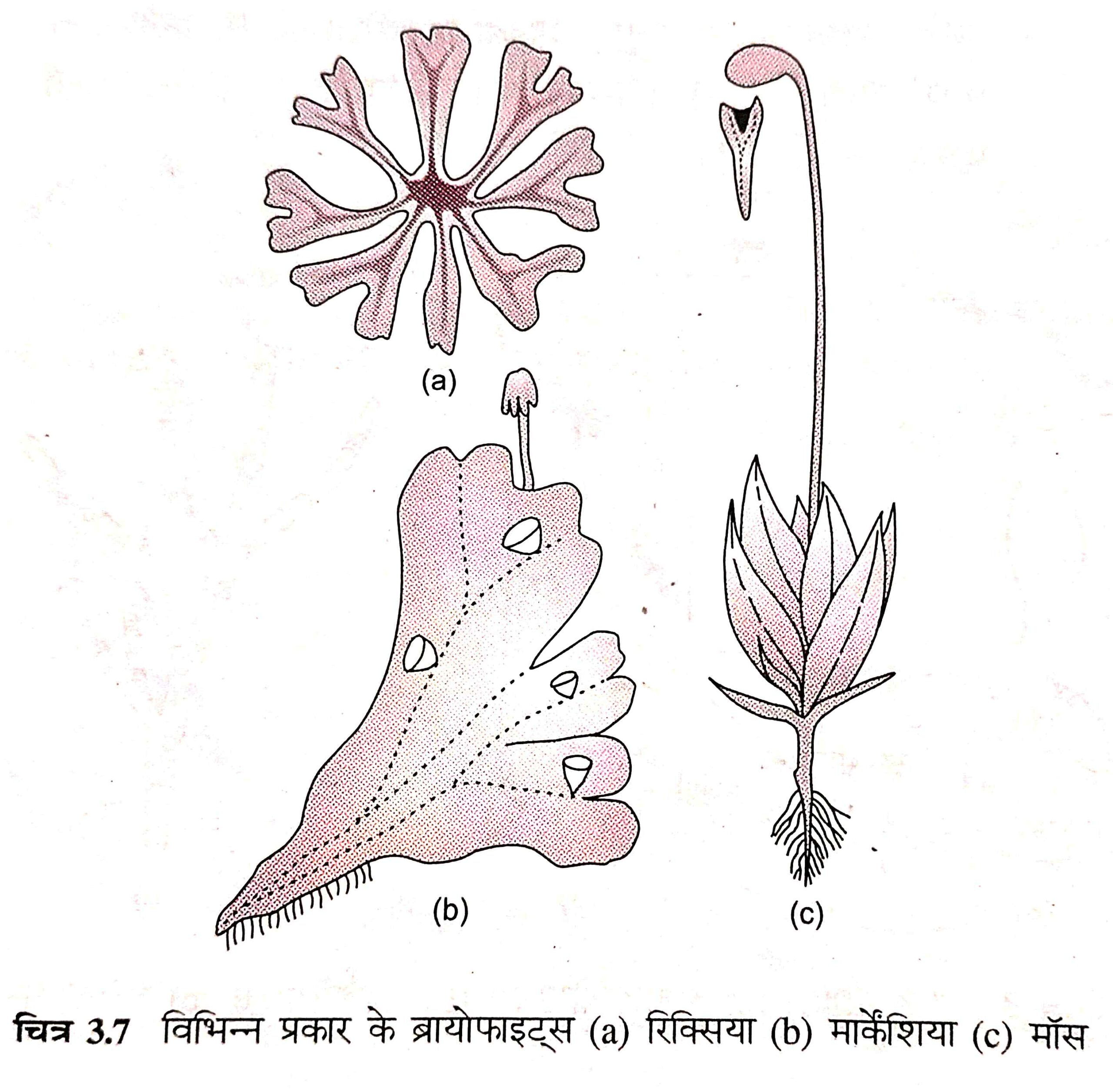 (iii) इनमें संवहनीय तंत्र नहीं होता है। यानी इनमें जल और भोजन पहुँचाने वाली विशेष नलिकाएँ नहीं पाई जातीं।
