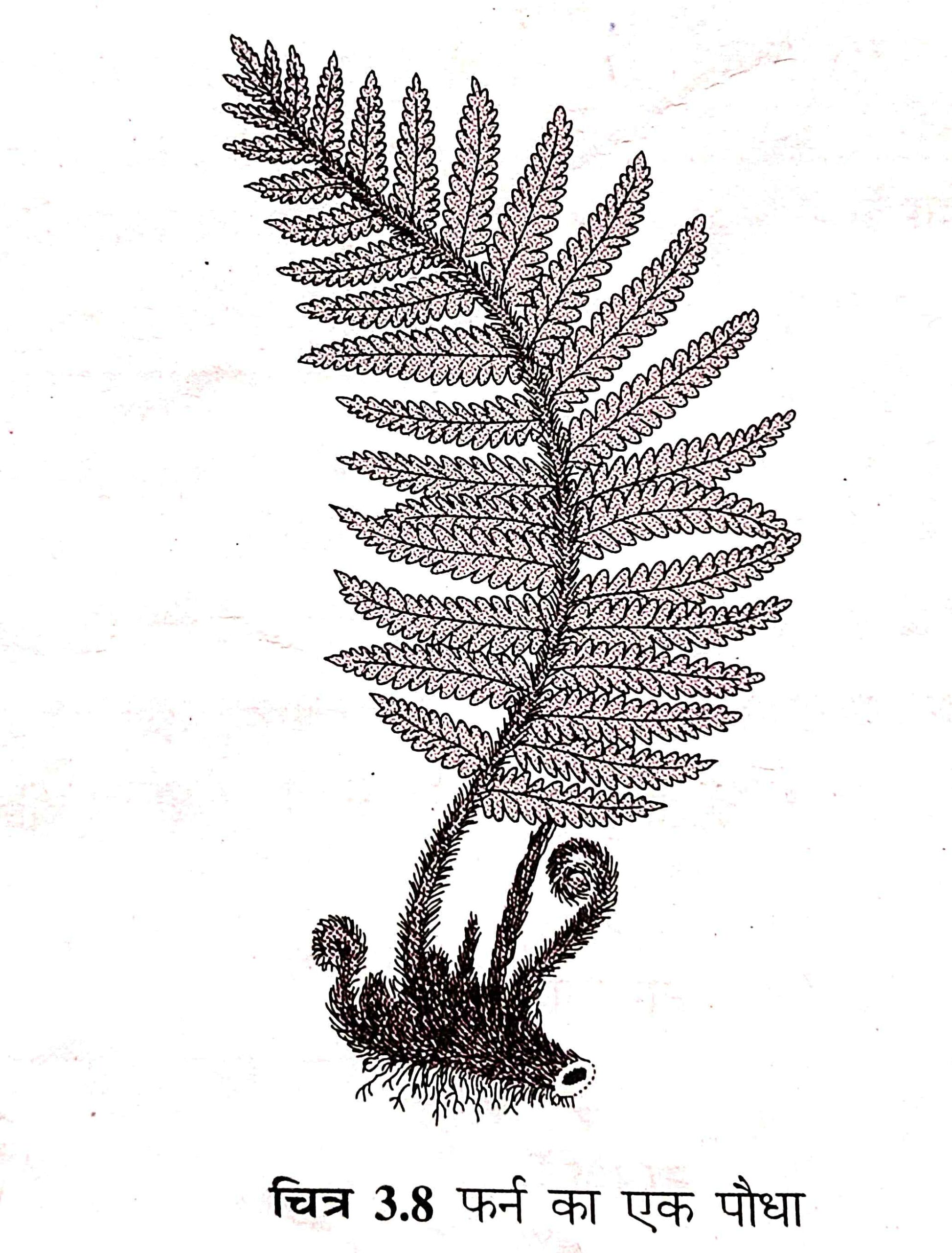 (iii) टेरिडोफाइटा – इन पौधों में असली जड़, तना और पत्तियाँ होती हैं, पर बीज नहीं होते है। जैसे– फर्न