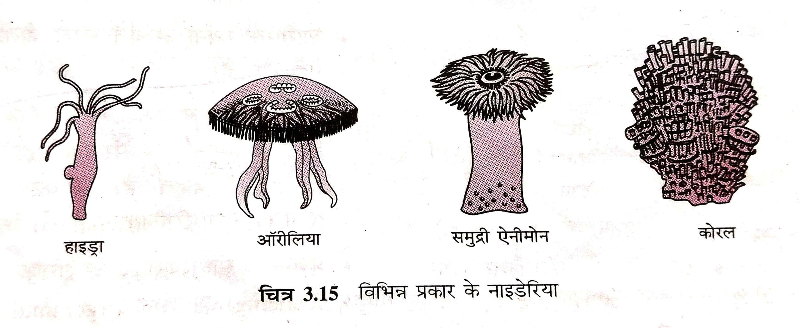 (vii) उदाहरण: हाइड्रा, ऑरीलिया (जेलीफ़िश), समुद्री ऐनीमोन, कोरल आदि।